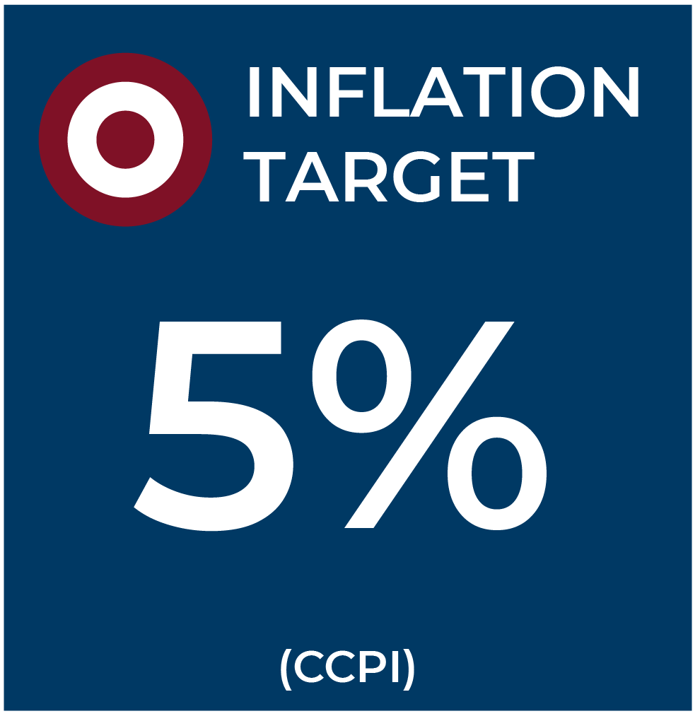 If the headline inflation rate deviates more than +/- 2 percentage points from the inflation target of 5 per cent for two consecutive quarters, the Central Bank is said to have failed to achieve the inflation target.